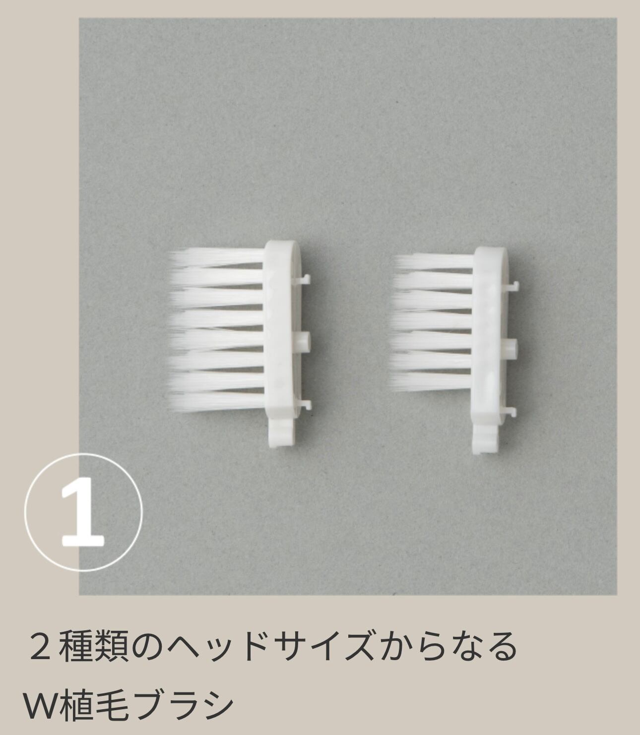 どちらのサイズも、歯の隙間の汚れを落とす超極細毛と歯の表面の汚れを落とす普通毛の“ダブル植毛”によって、歯周病(歯槽膿漏)を予防し、心地良いブラッシング効果を得られます。